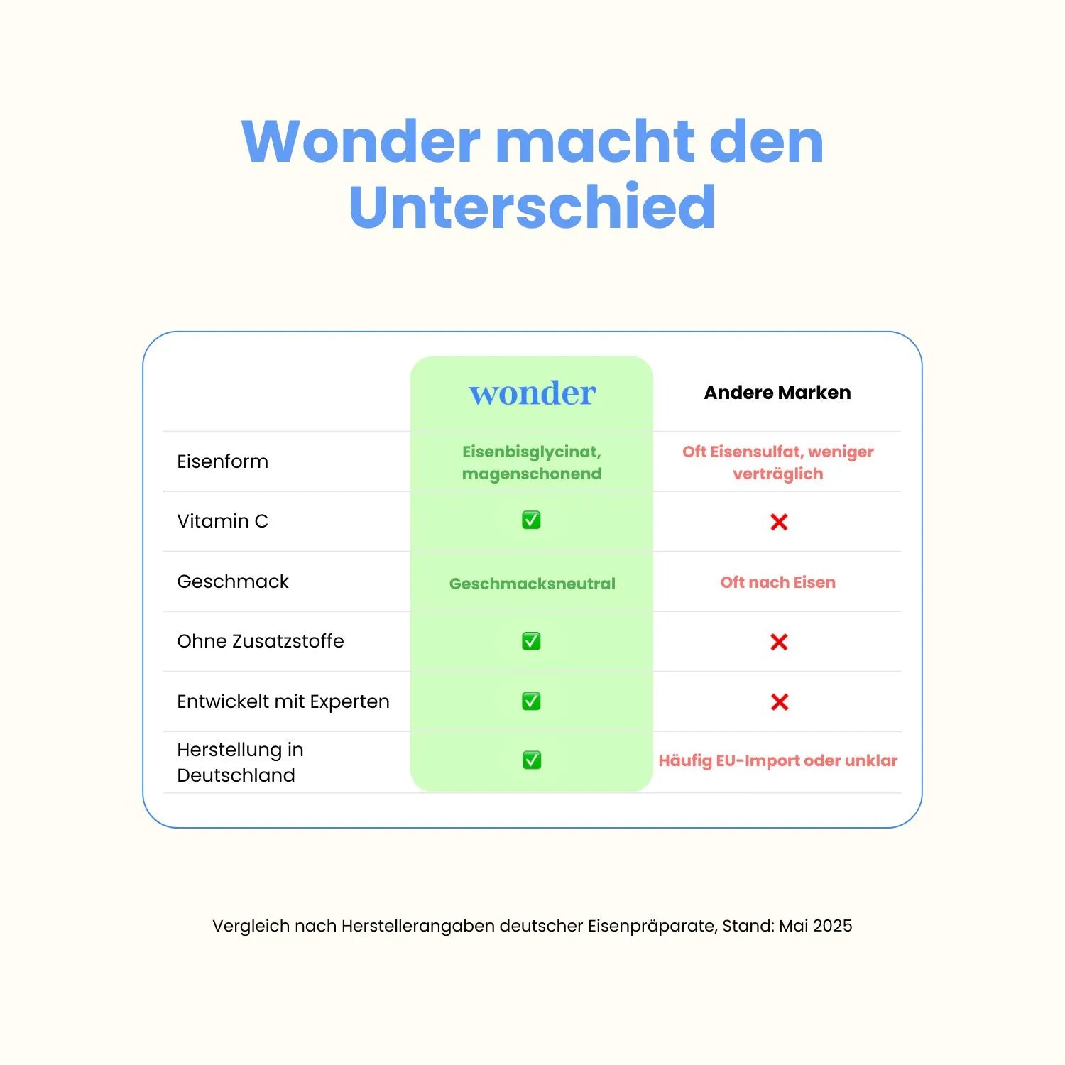 Vergleich nach Herstellerangaben deutscher Eisenpräparate, Stand: Mai 2025