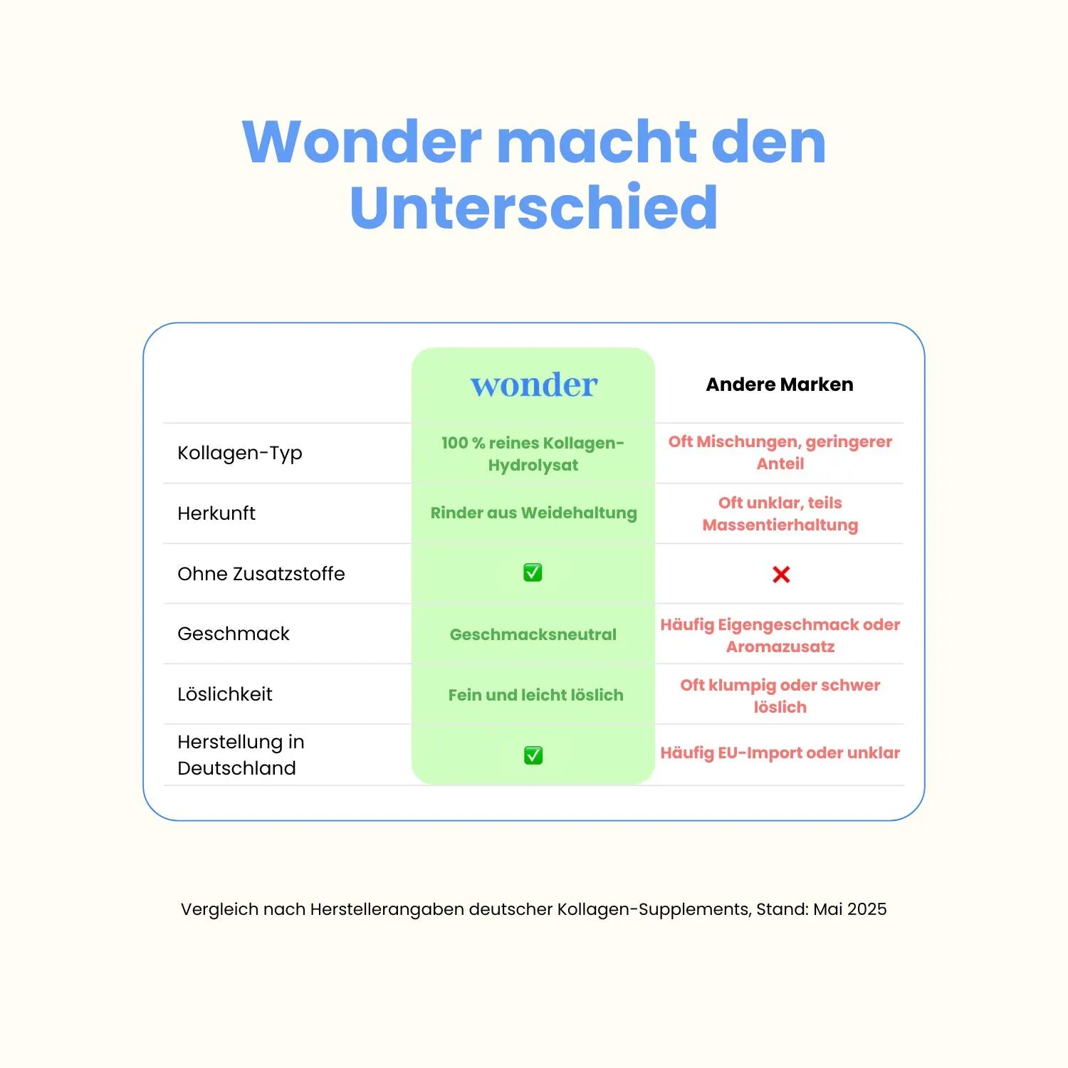 Vergleich nach Herstellerangaben deutscher Kollagen-Supplements, Stand: Mai 2025